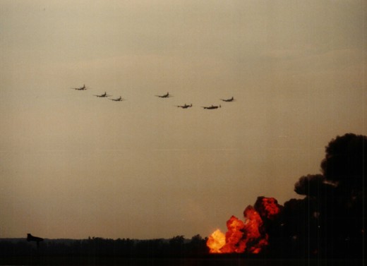Formation of B-25 bombers honoring the daring mission led by Lieutenant Colonel James H. Doolittle.