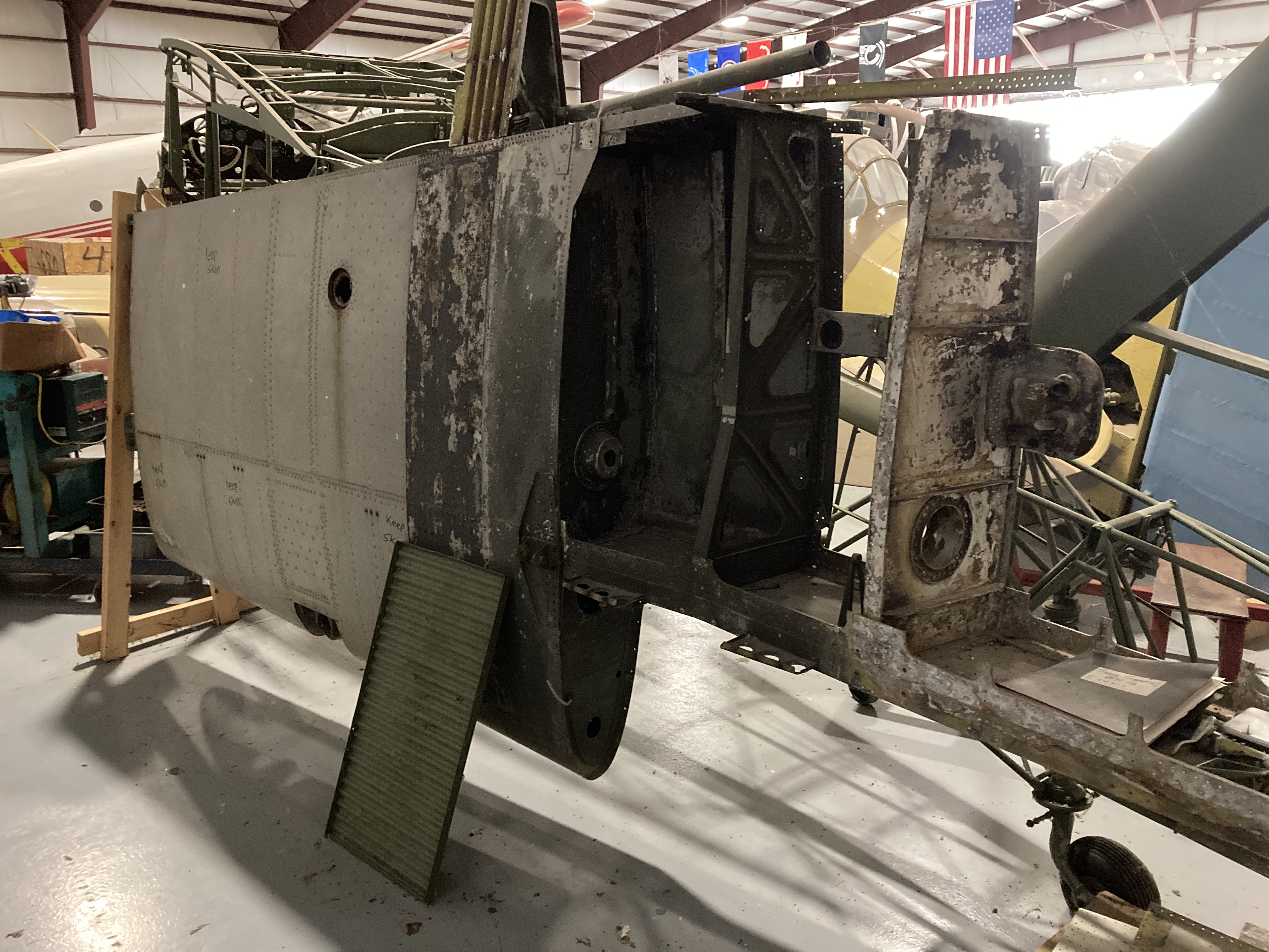 Built in 1943 for the U.S. Navy, this SNV-2 served as part of the Navy’s pilot training program during WWII. After military service, the aircraft passed through civilian ownership before being donated to the National Warplane Museum in 2016 by Jeary Vogt. Currently, the aircraft remains in unrestored condition, stored in sections in the Museum’s hangar awaiting future restoration. Once restored, it will represent a key step in the complex training pipeline that prepared American naval aviators for wartime service.